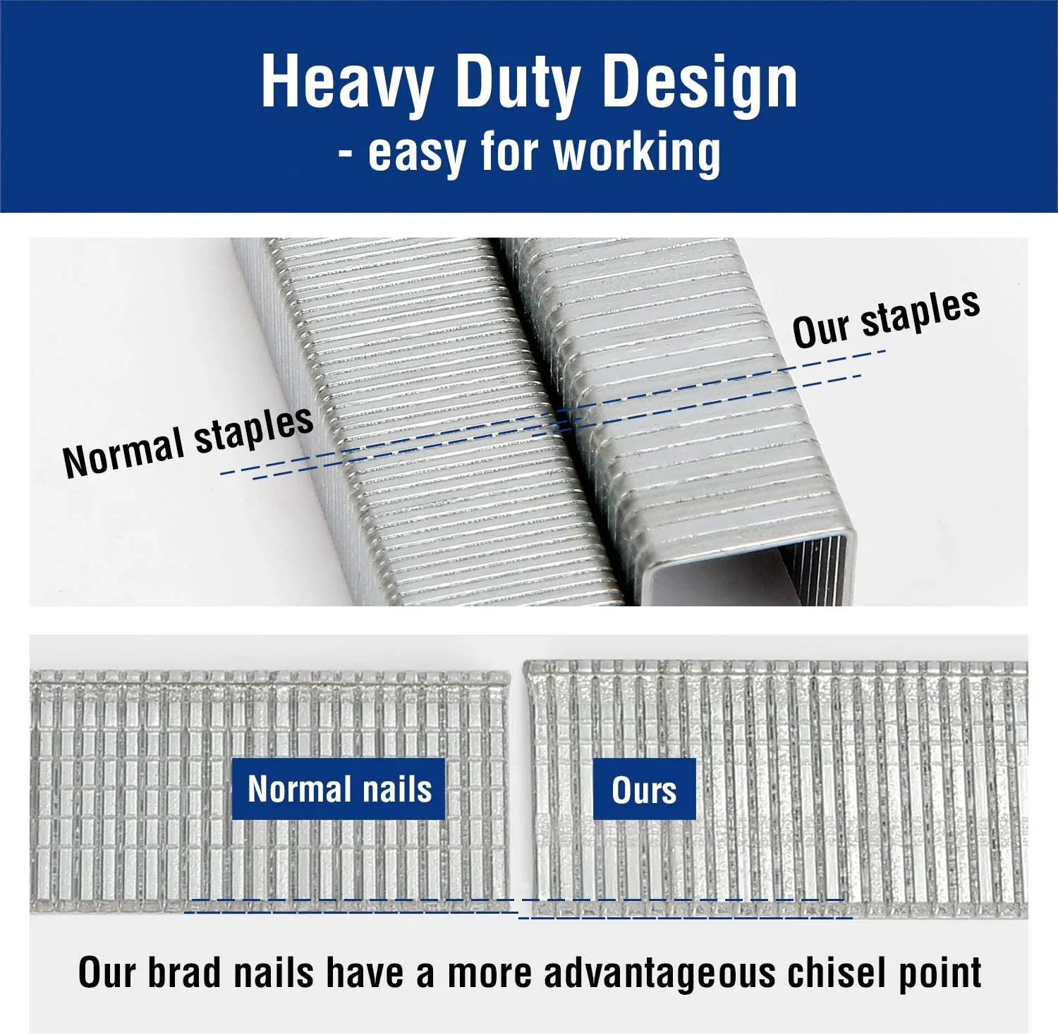 Sharp chisel points designed for precision stapling allow for fewer jams, buckles, and interruptions. Easily pierce through many different materials.